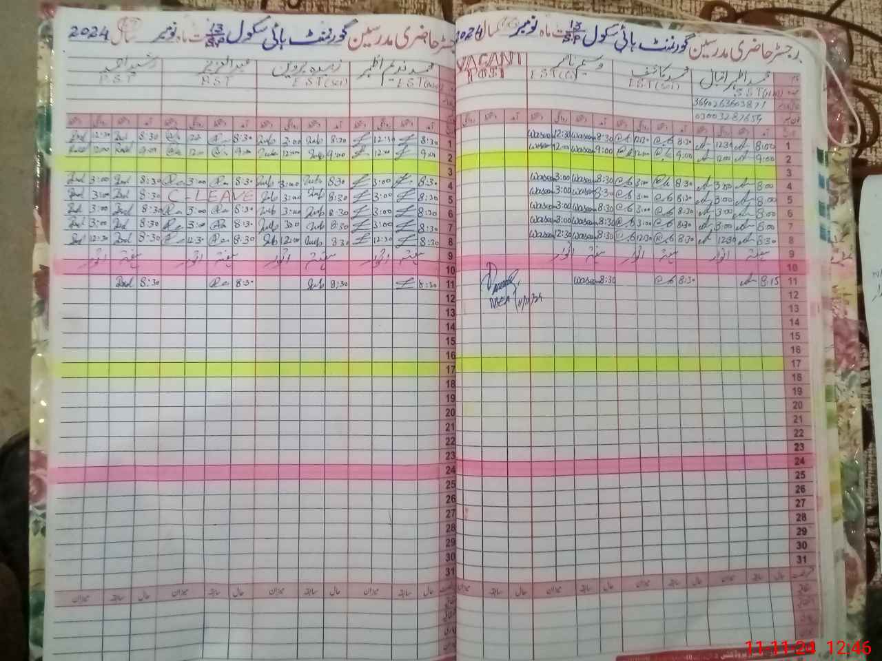 | CNIC | Full Name | Designation | R/C | Absence During Last Calender Month |