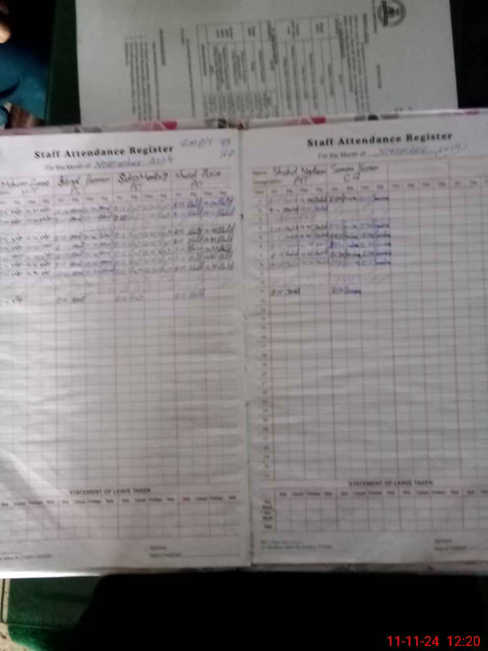 | CNIC | Full Name | Designation | R/C | Absence During Last Calender Month |