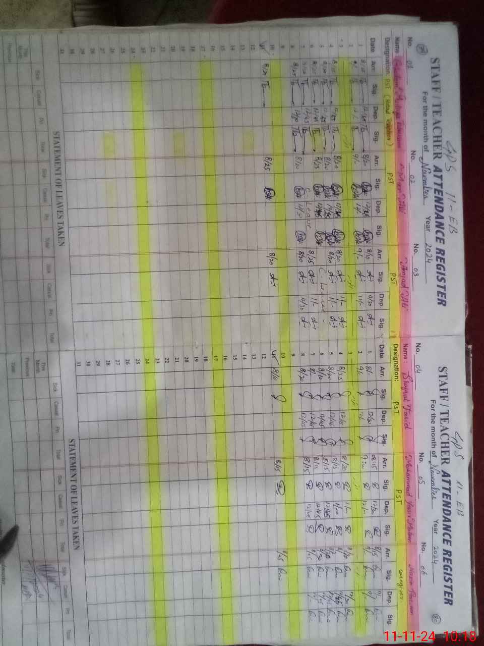 | CNIC | Full Name | Designation | R/C | Absence During Last Calender Month |