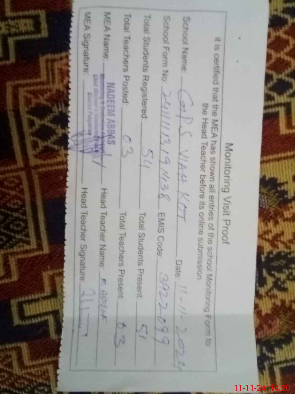 | EMIS Code: 39220099 | Name of School: GPS VIAH KOT | |||