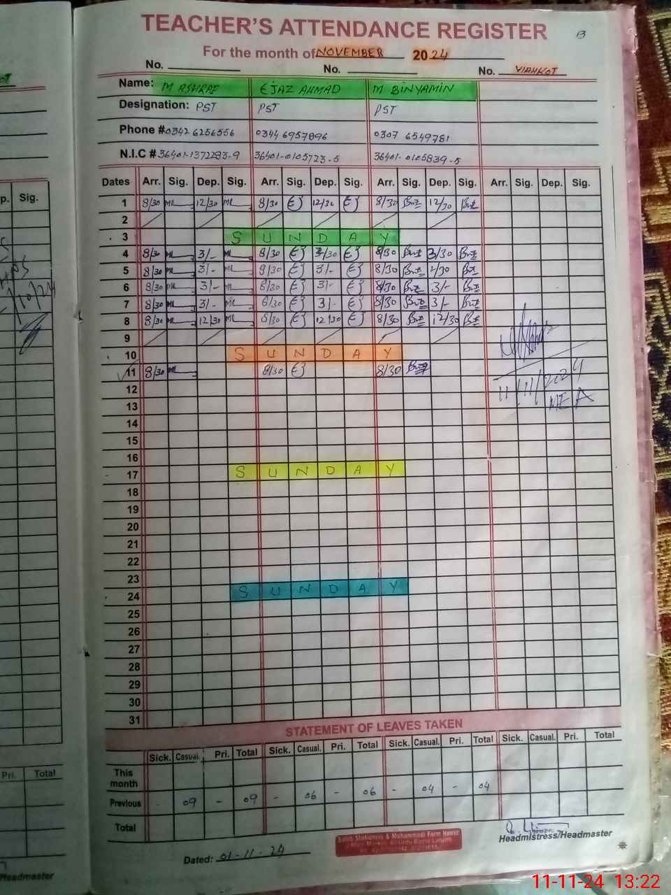 | Name: MU**** AS**** Designation: (School Headmaster's/Headmistress's) PST Phone/Cell Number: 03**** |