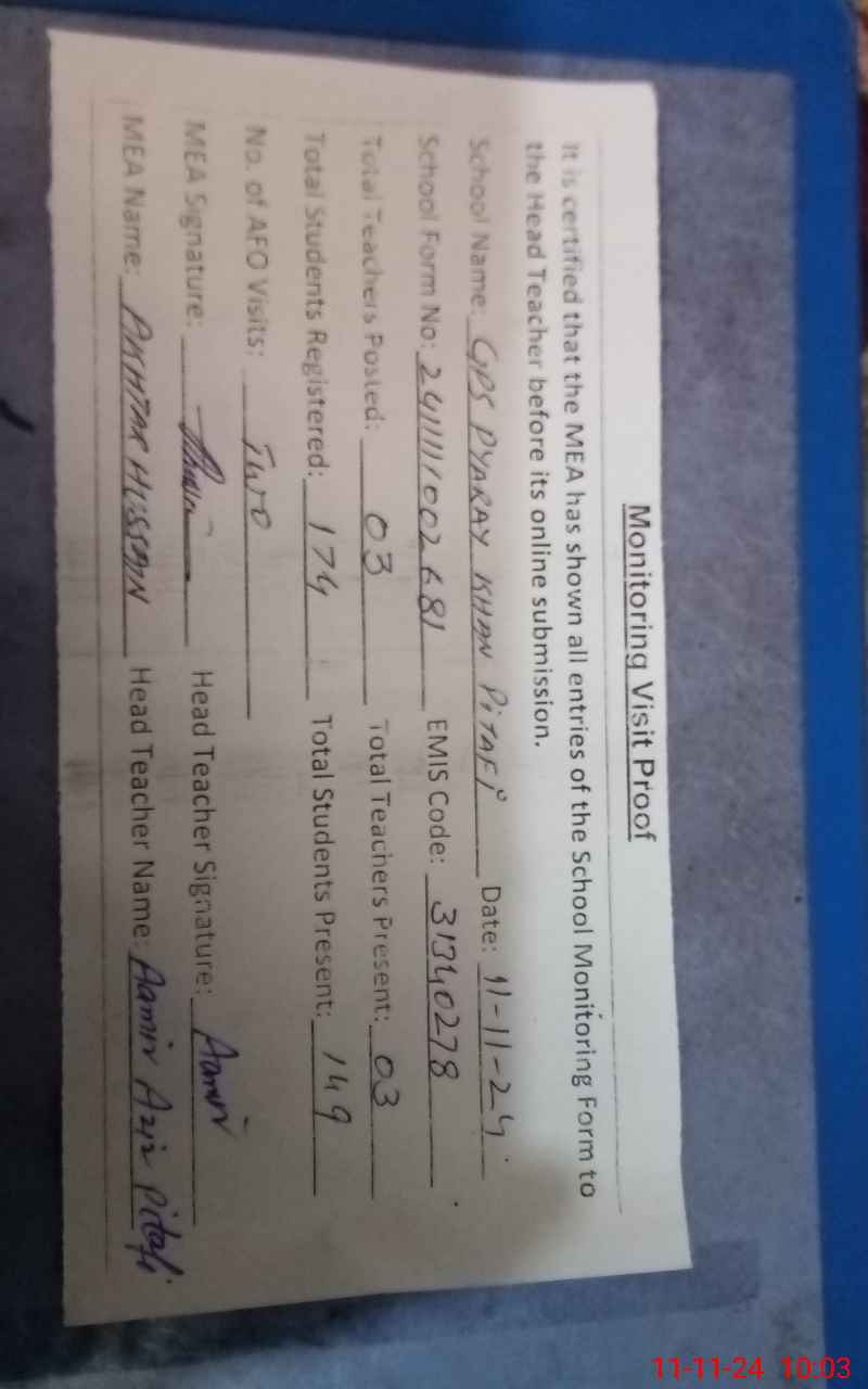 | EMIS Code: 31340278 | Name of School: GPS BASTI PYARE KHAN PITAFI | |||