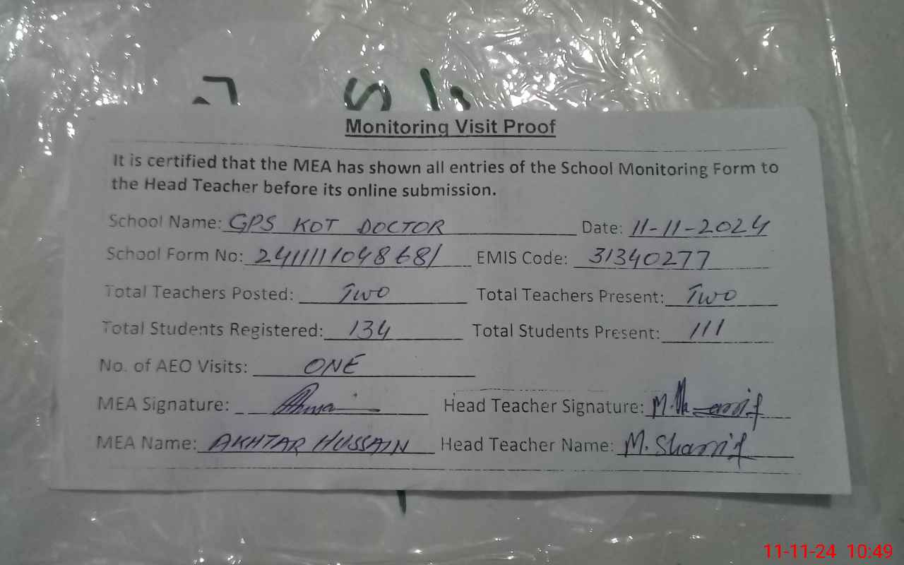 | EMIS Code: 31340277 | Name of School: GPS KOT DOCTOR | |||