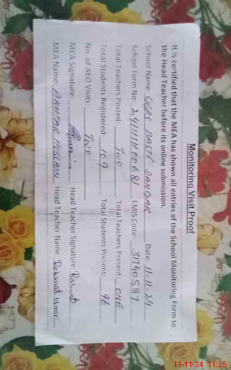 | EMIS Code: 31340587 | Name of School: GGPS BASTI DANGAR | |||