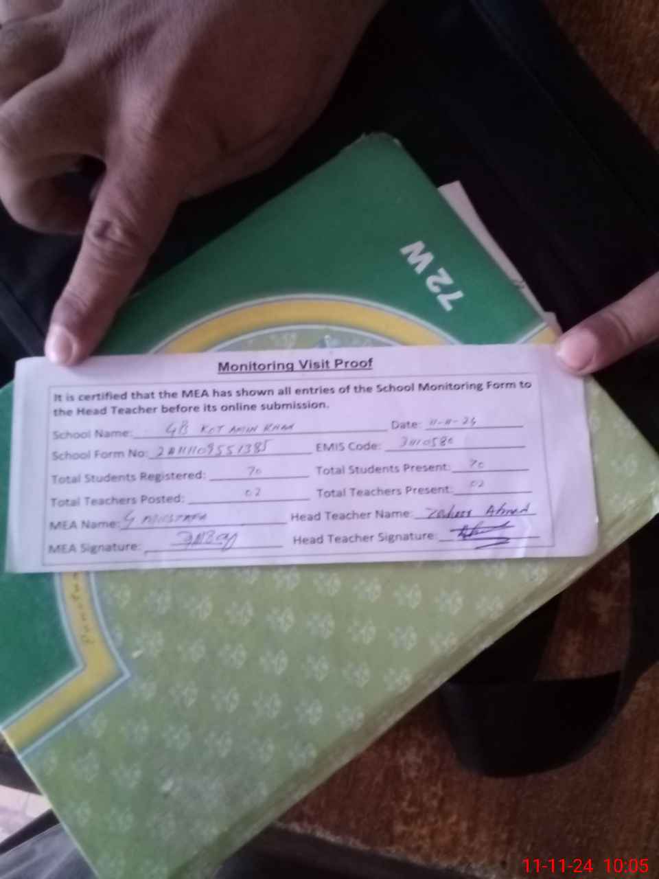| EMIS Code: 31110580 | Name of School: GPS KOT AMIN KHAN | |||