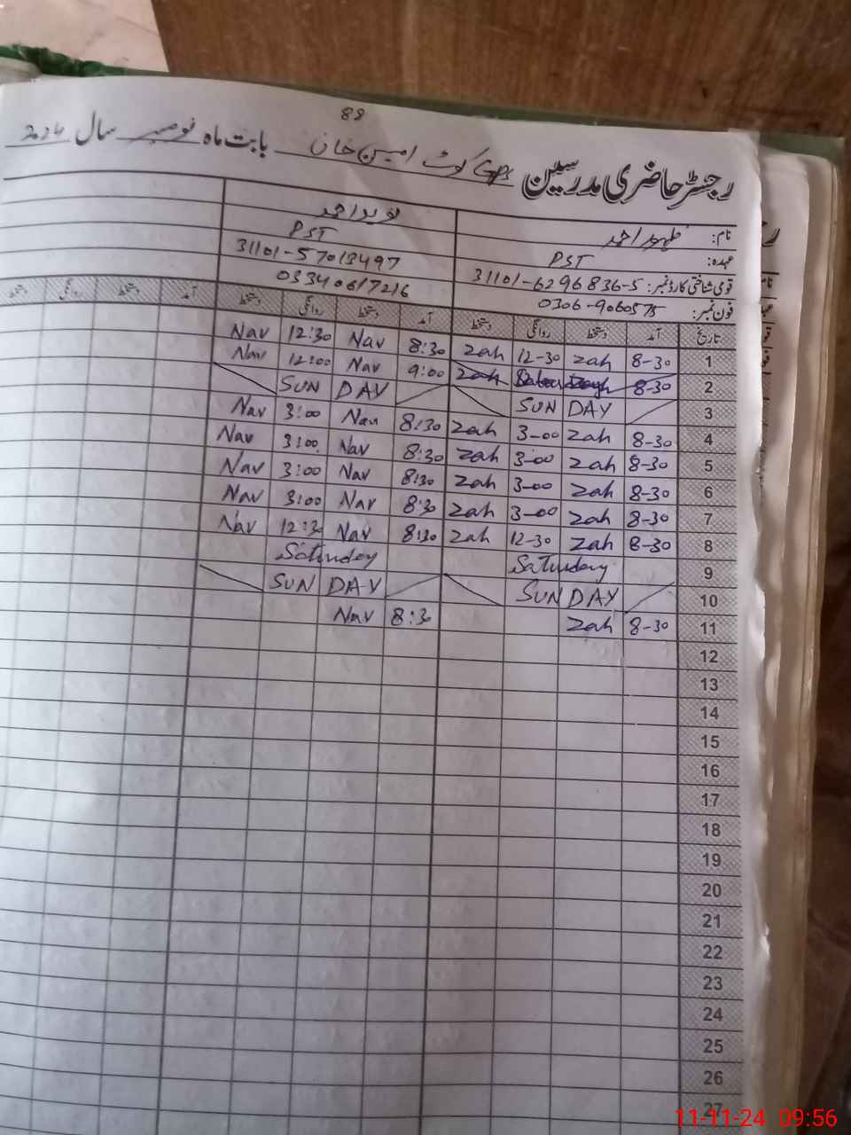 | Name: ZA**** AH**** Designation: (School Headmaster's/Headmistress's) PST Phone/Cell Number: 03**** |