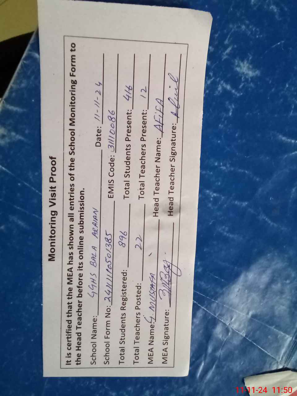 | EMIS Code: 31110086 | Name of School: GGHS BALA ARRIAN | |||