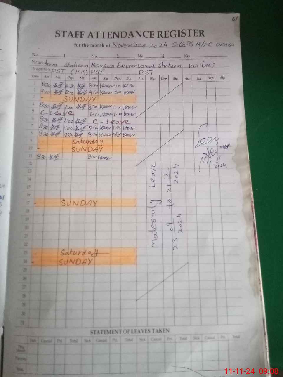 | 35**** | Uz**** Sh**** | PST | Regular | 31 | 0 | 0 | 31 | 0 | 0 | 0 | 0 | 0 | Maternity |