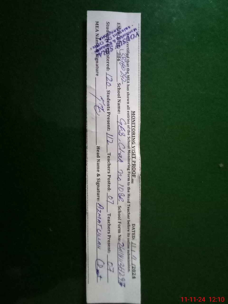 | EMIS Code: 38460242 | Name of School: GES CHAK NO.10 SB | |||