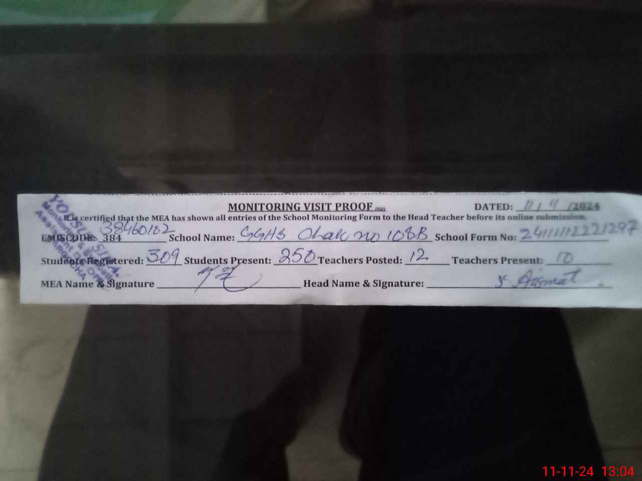 | EMIS Code: 38460102 | Name of School: GGHS CHAK NO.10 SB | |||