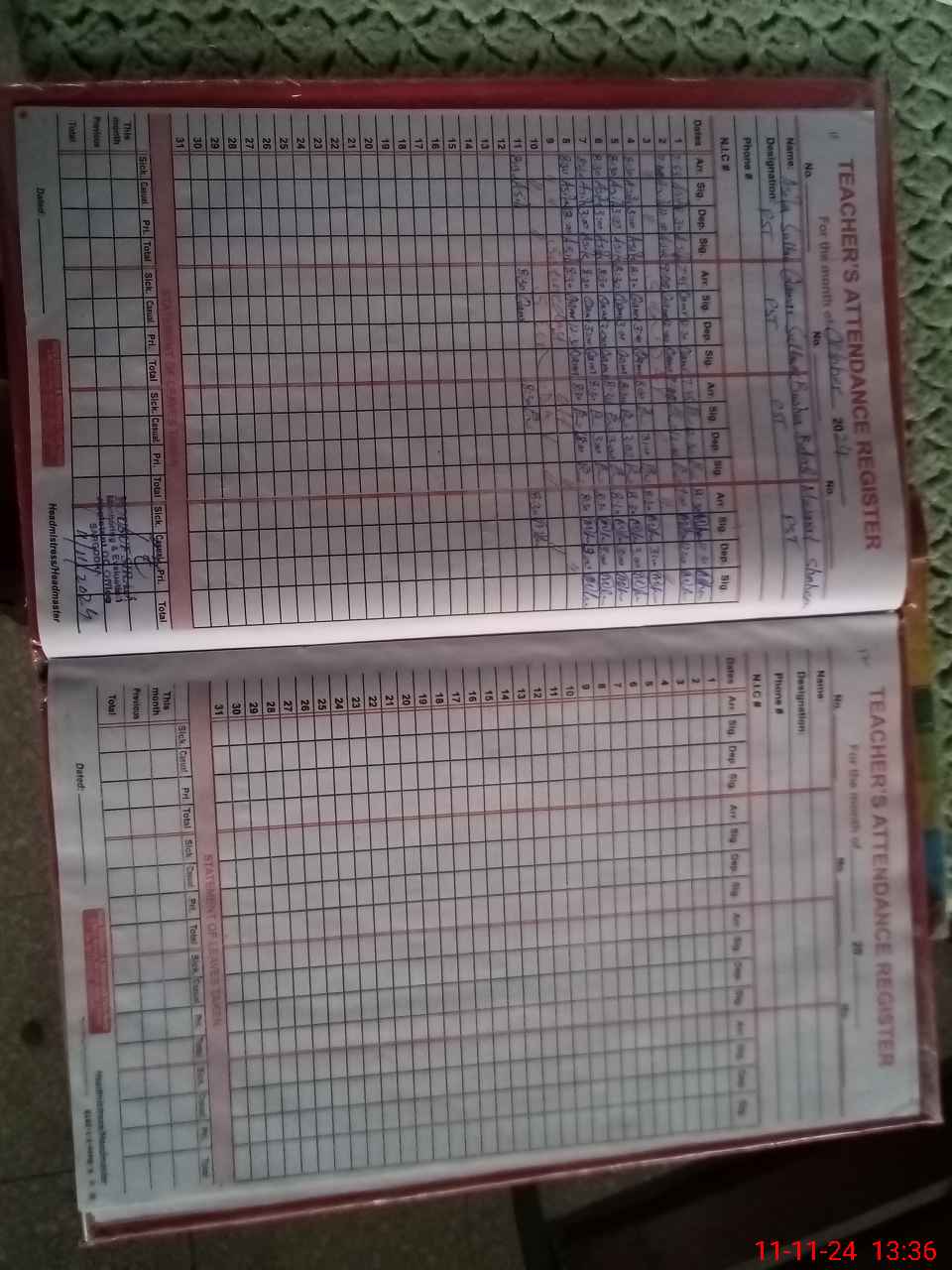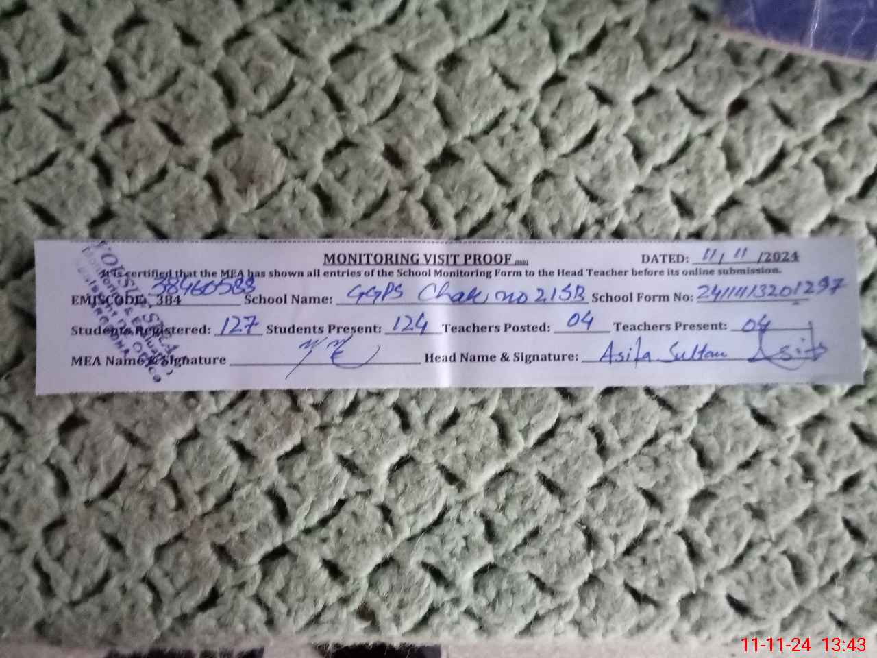 | Name: AS**** SU**** Designation: (School Headmaster's/Headmistress's) PST Phone/Cell Number: 03**** |