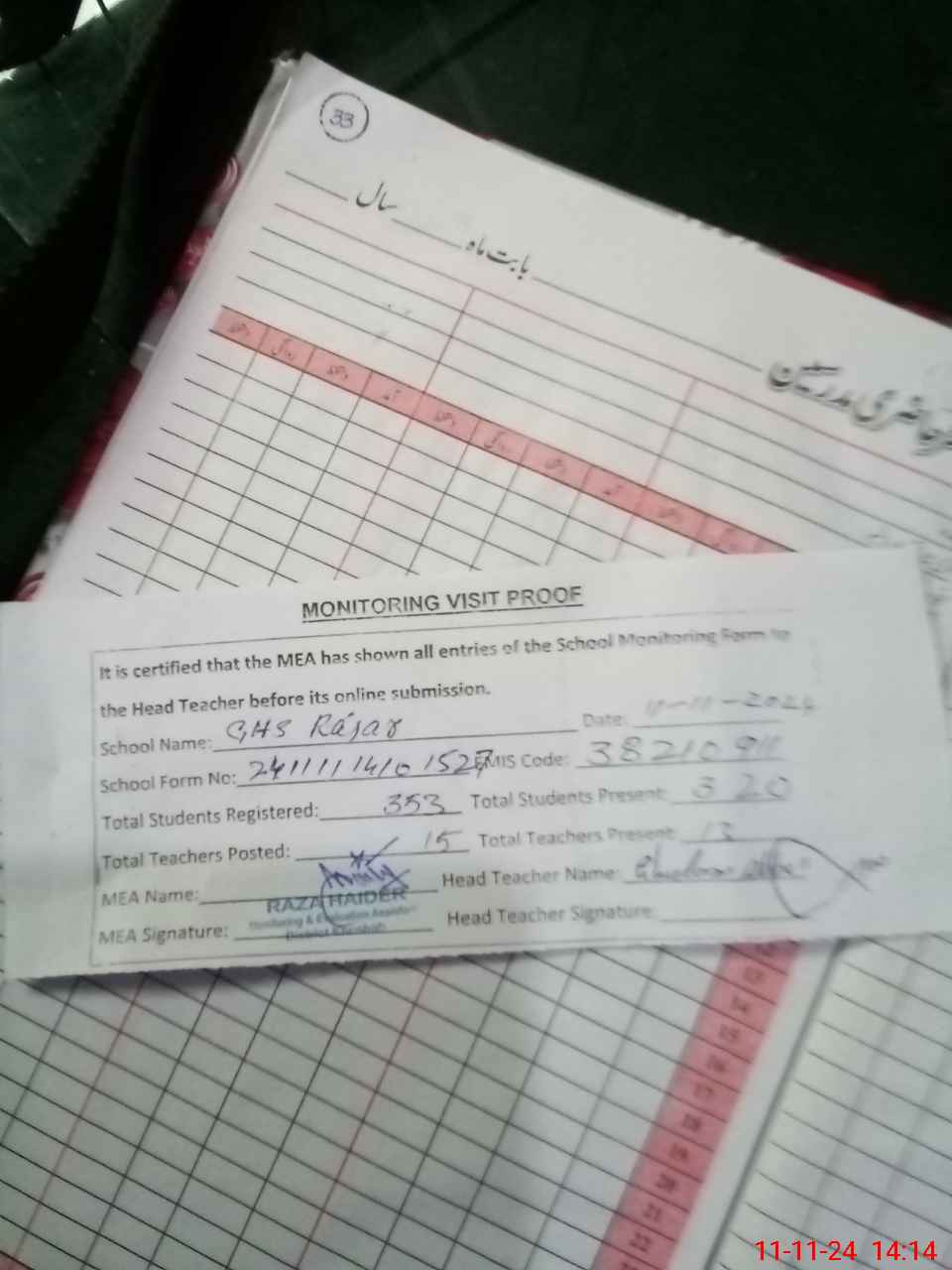 | EMIS Code: 38210911 | Name of School: GHS RAJAR | |||