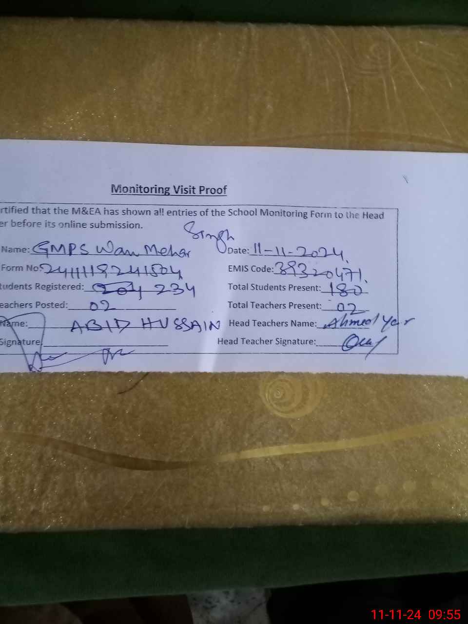 | EMIS Code: 39320471 | Name of School: GMPS WAN MEHR SINGH | |||