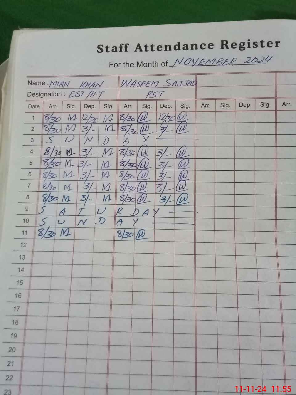 | CNIC | Full Name | Designation | R/C | Absence During Last Calender Month |