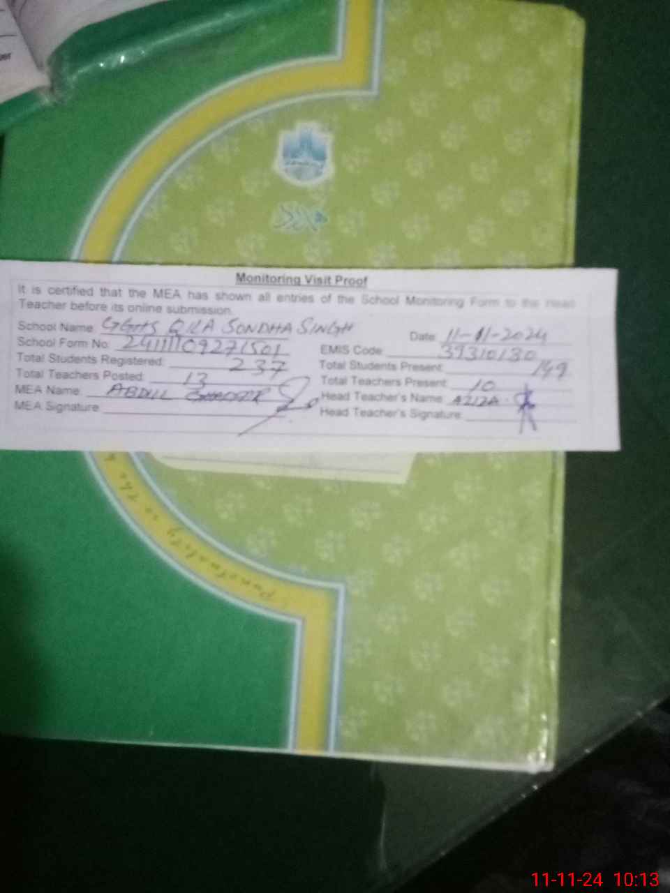 | EMIS Code: 39310130 | Name of School: GGHS SONDHA SINGH | |||