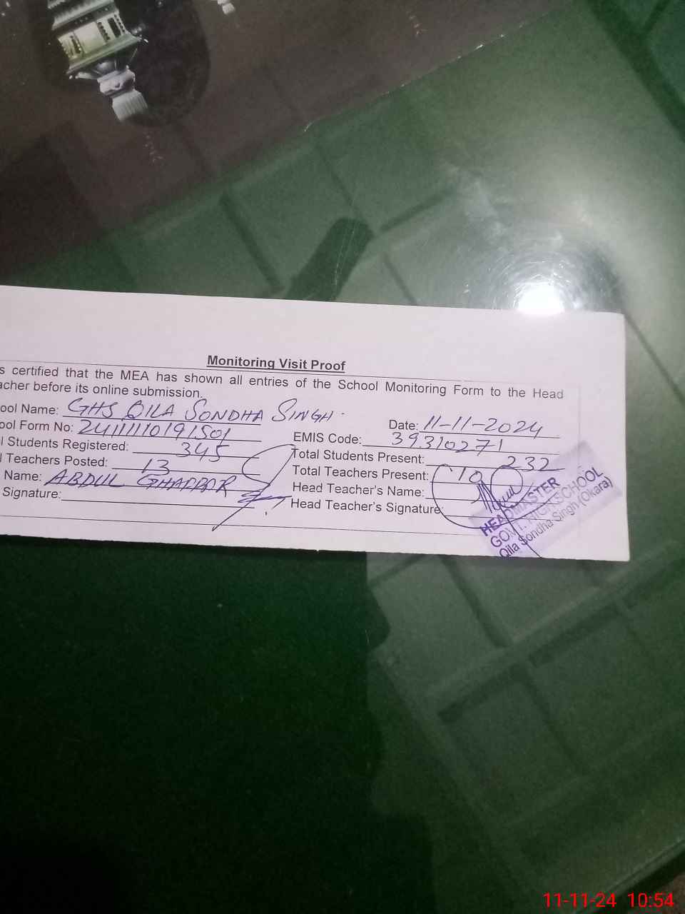 | EMIS Code: 39310271 | Name of School: GHS QILA SONDHA SINGH | |||