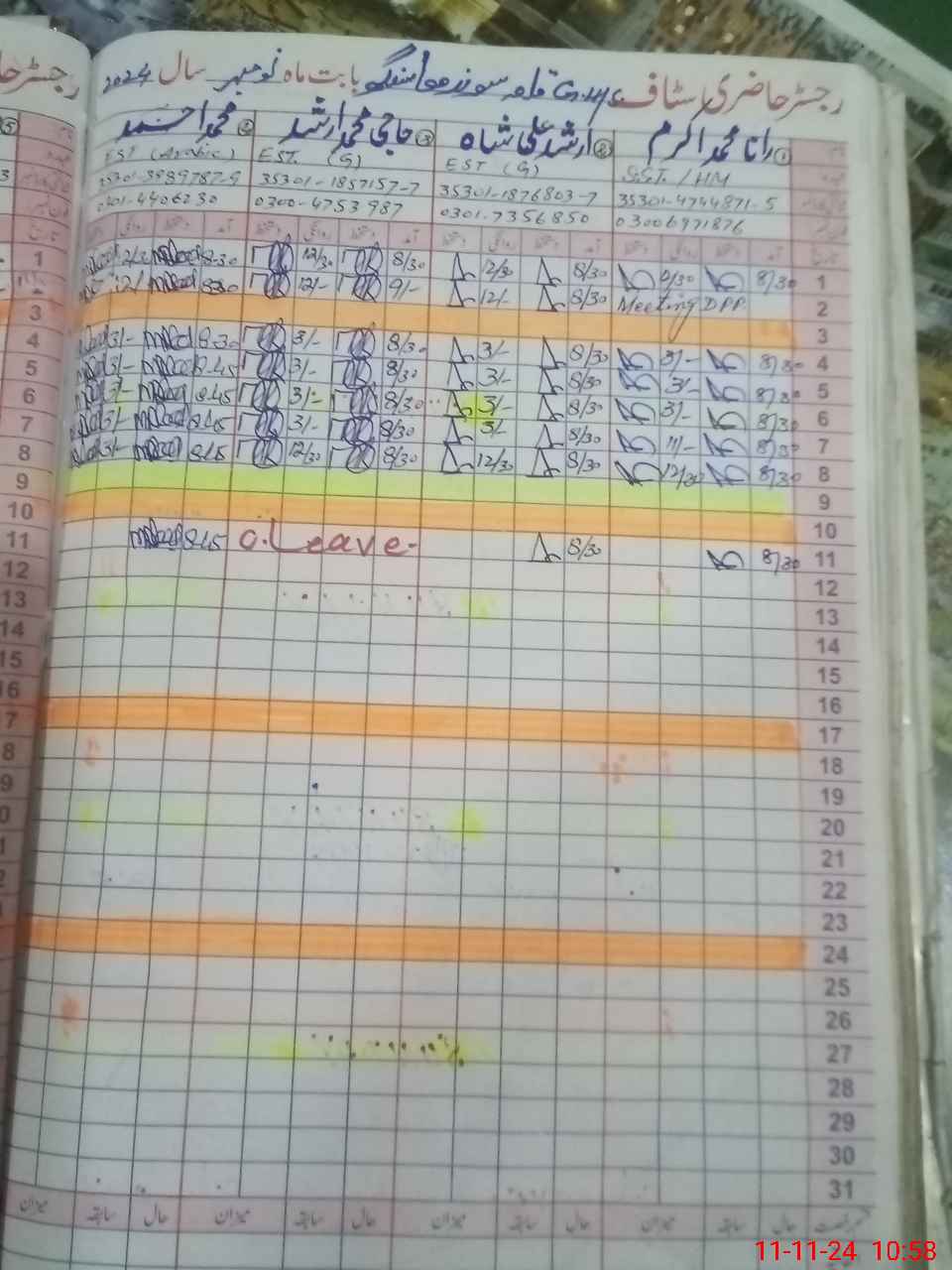 | CNIC | Full Name | Designation | R/C | Absence During Last Calender Month |