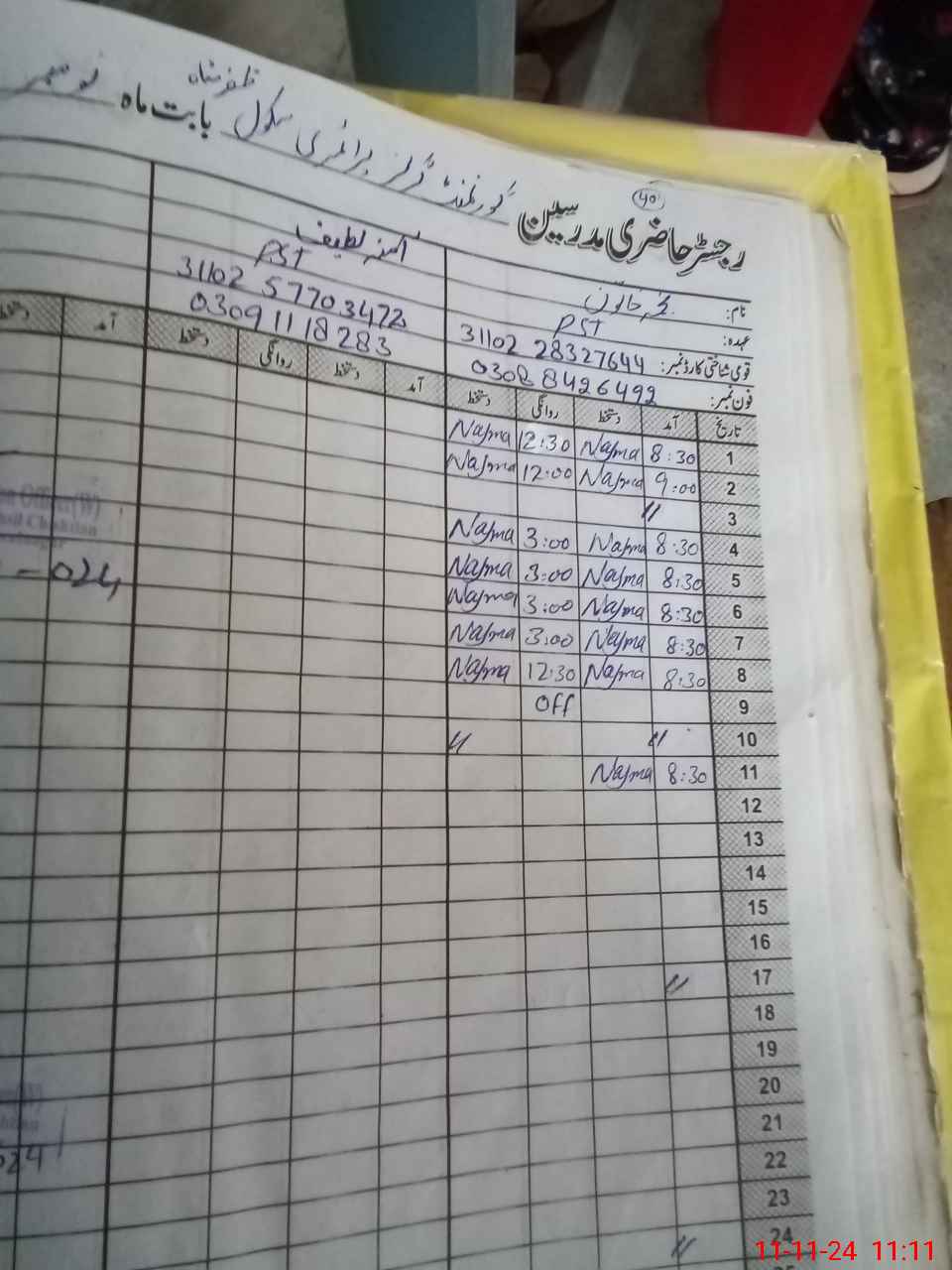 | Name: NA**** KH**** Designation: (School Headmaster's/Headmistress's) PST ARTS Phone/Cell Number: 03**** |
