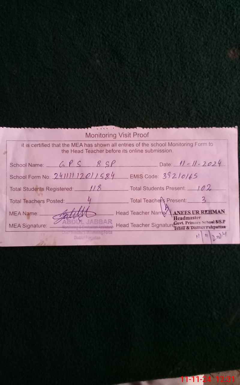 | EMIS Code: 39210165 | Name of School: GPS 8 SP | |||