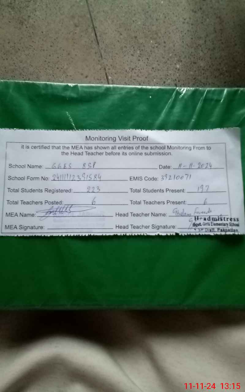 | Name: Gh**** Fa**** Designation: (School Headmaster's/Headmistress's) SST Science Phone/Cell Number: 03**** |