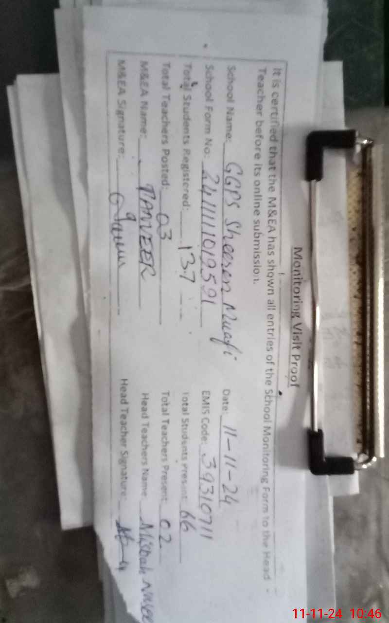 | EMIS Code: 39310711 | Name of School: GGPS SHEEREN MUAFI | |||