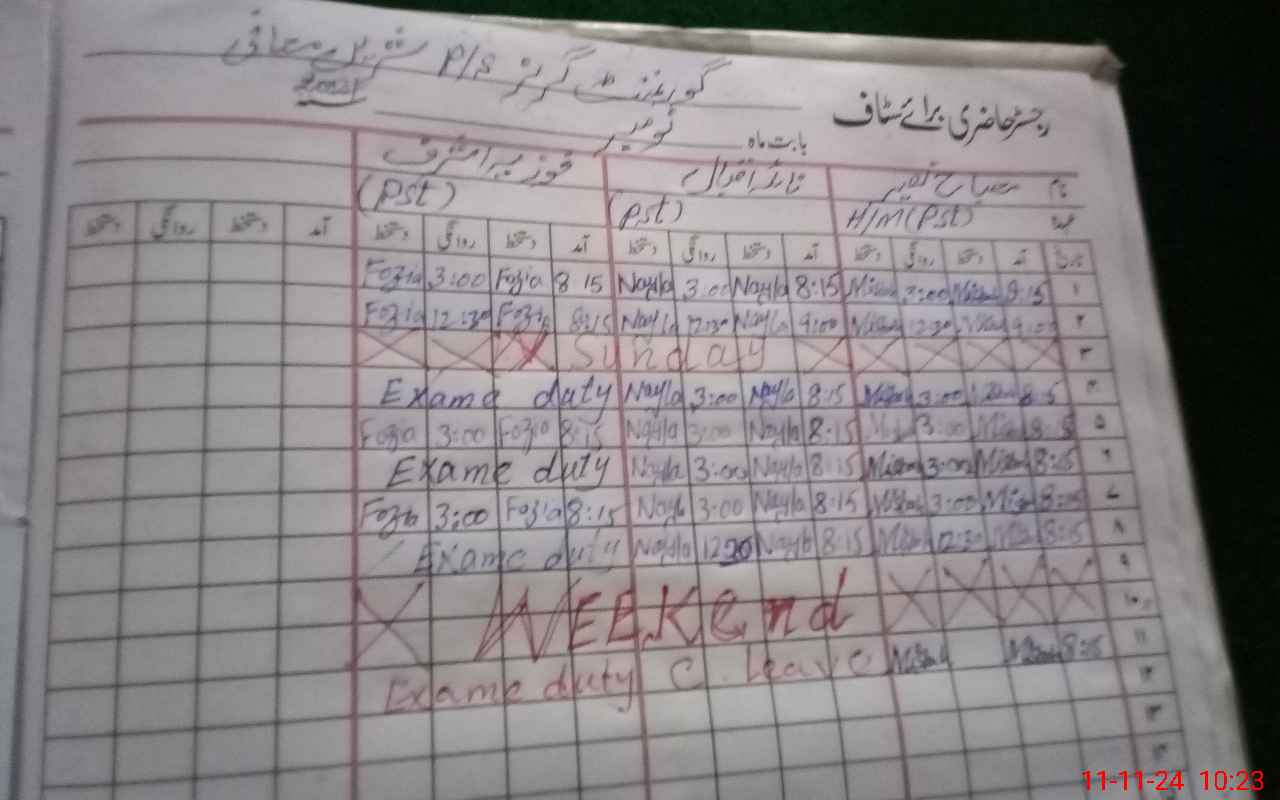 | 35**** | Fo**** As**** | PST | Regular | 0 | 0 | 0 | 0 | 0 | 0 | 0 | 0 | 0 | Exam Duty |