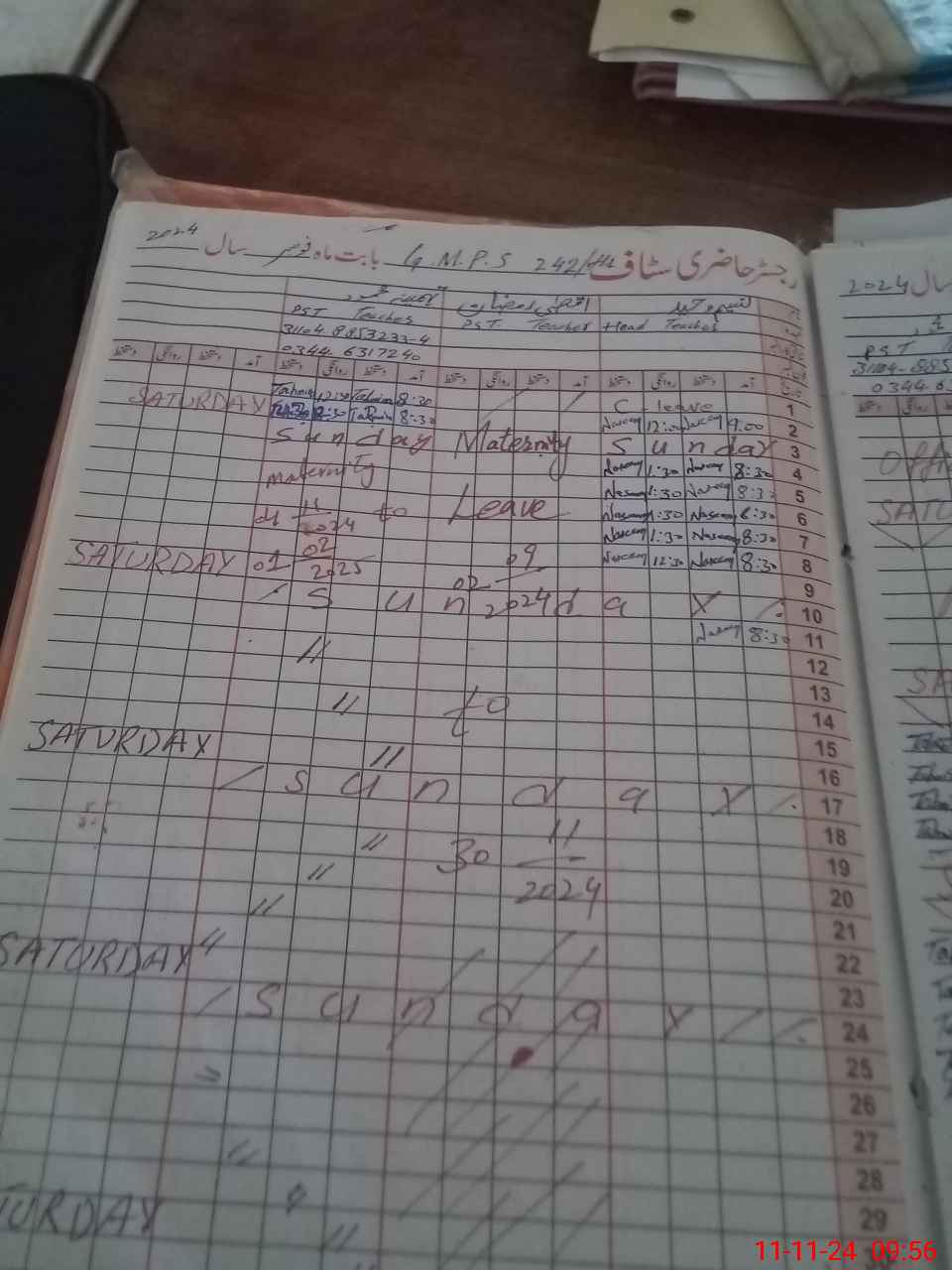 | Leave | Duty | Absent | Maternity | Medical | Ex- Pak |