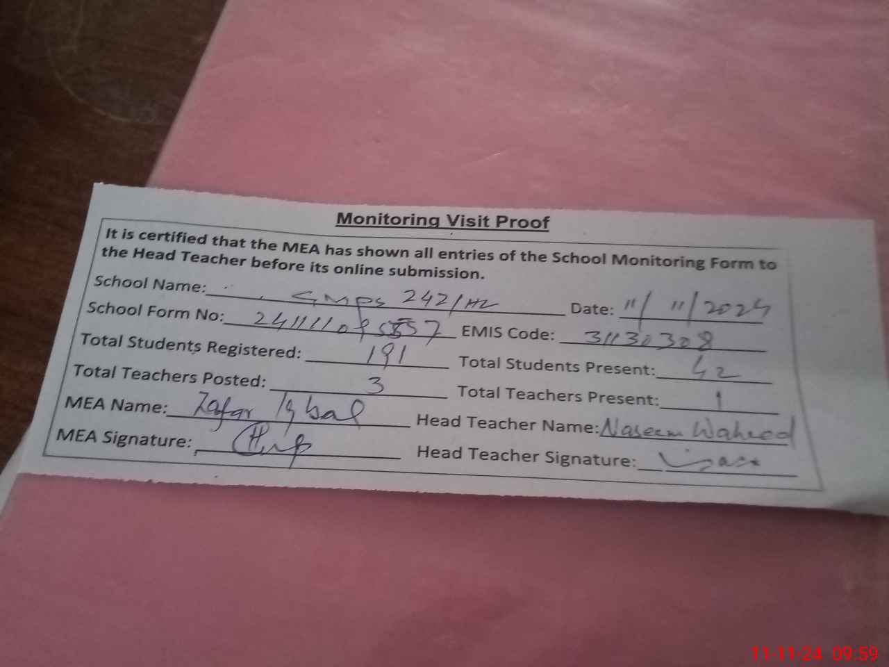 | EMIS Code: 31130308 | Name of School: GMPS CHAK NO. 242 HL | |||