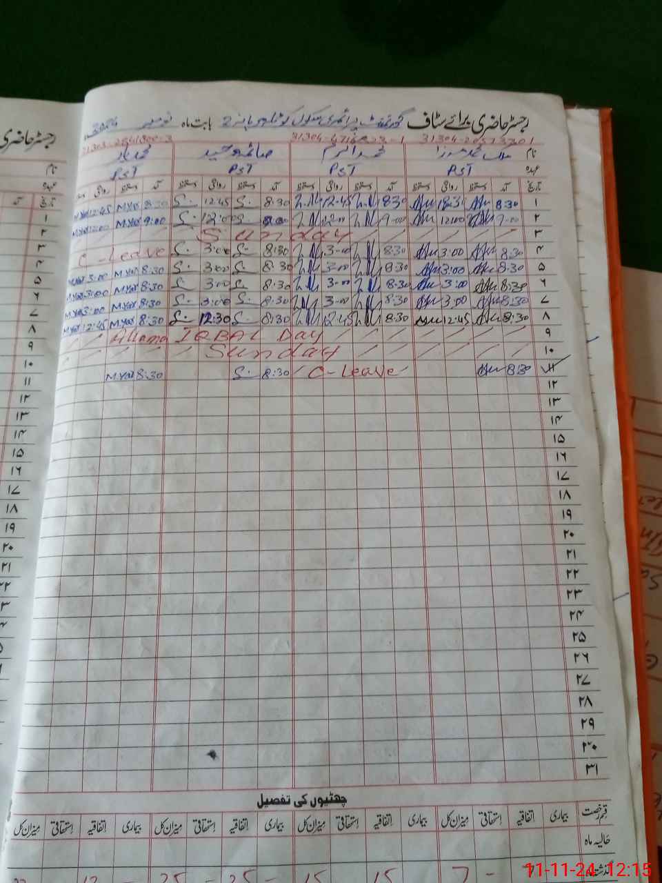 | 31**** | Mu**** Ak**** | PST | Regular | 4 | 0 | 0 | 0 | 0 | 0 | 0 | 0 | 4 | Casual |