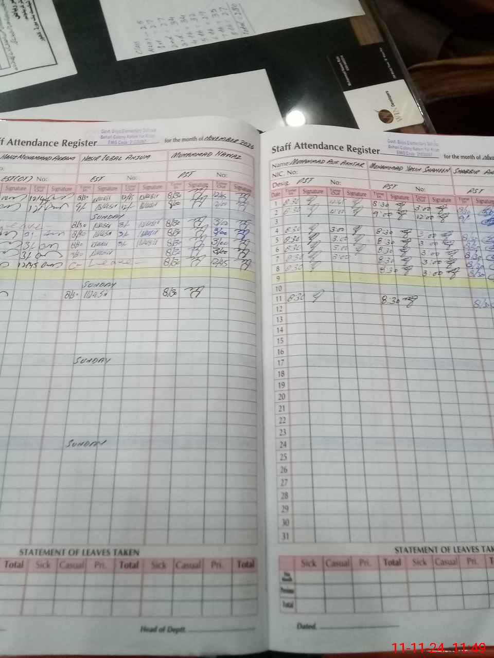 | CNIC | Full Name | Designation | R/C | Absence During Last Calender Month |