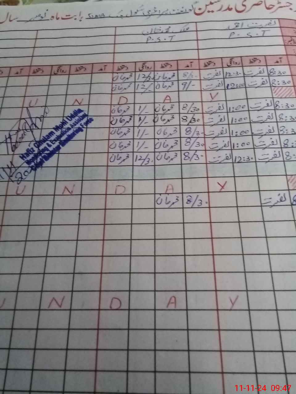 | CNIC | Full Name | Designation | R/C | Absence During Last Calender Month |