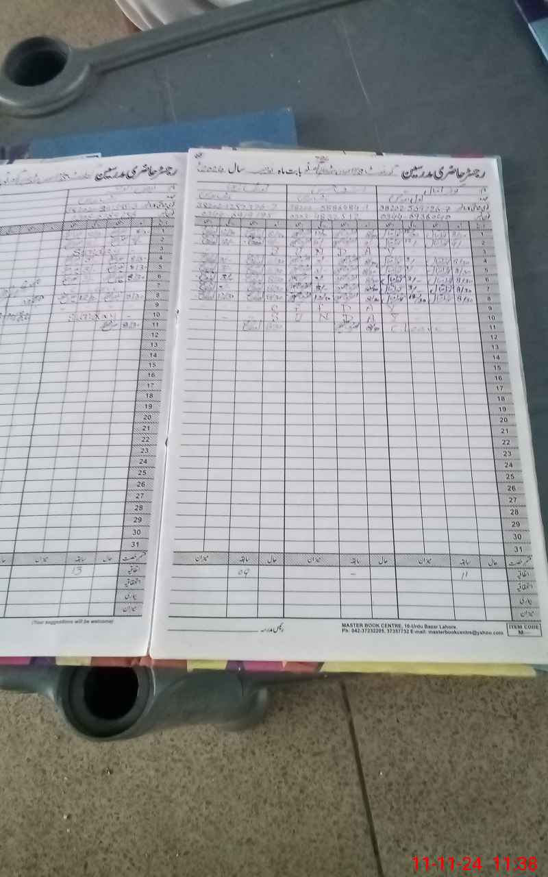| CNIC | Full Name | Designation | R/C | Absence During Last Calender Month |