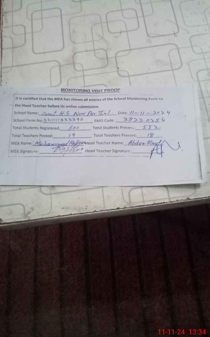| EMIS Code: 38220254 | Name of School: GHS NOORPUR THAL | |||