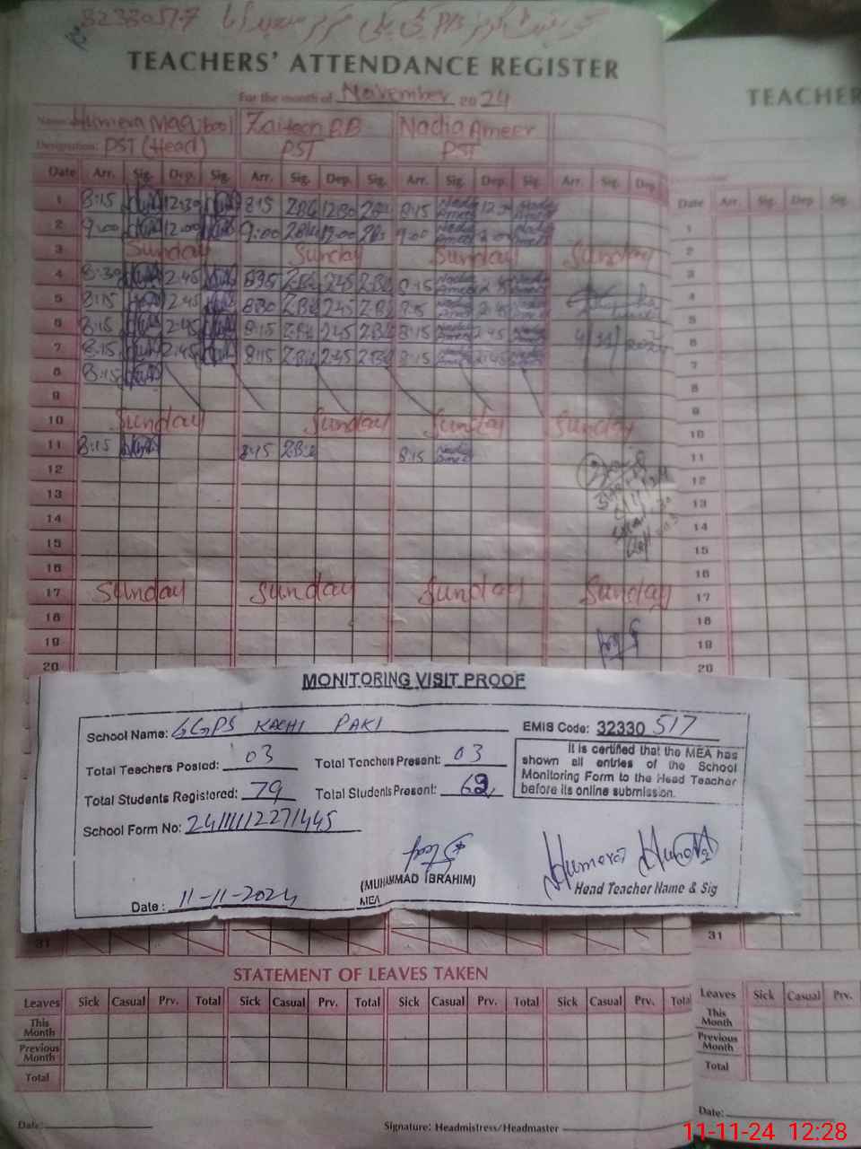 | EMIS Code: 32330517 | Name of School: GGPS KACHI PAKI | |||