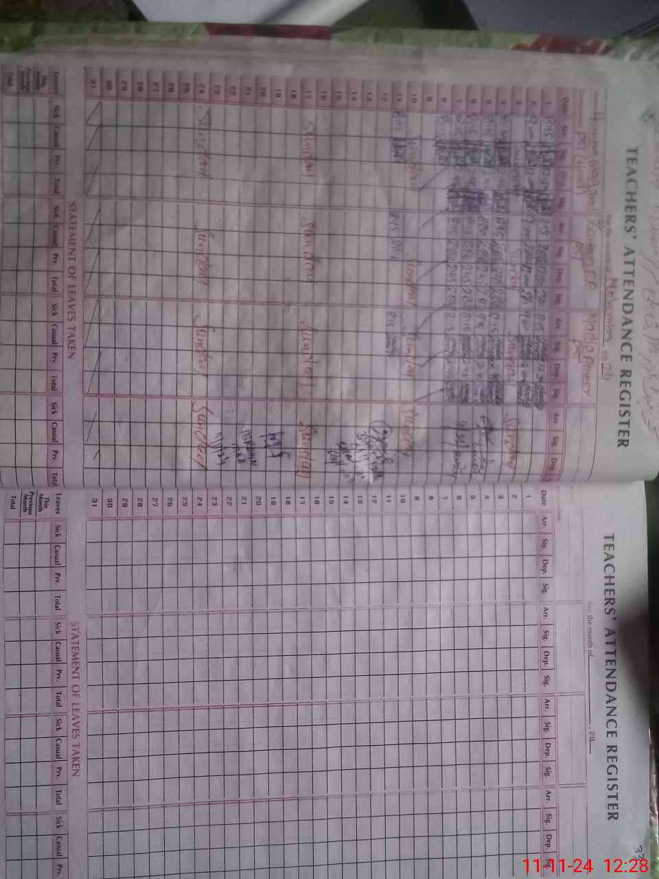 | No. of Students Present - Male | 0 | 0 | 17 | 3 | 2 | 1 | 2 | 3 | 28 | |||||||