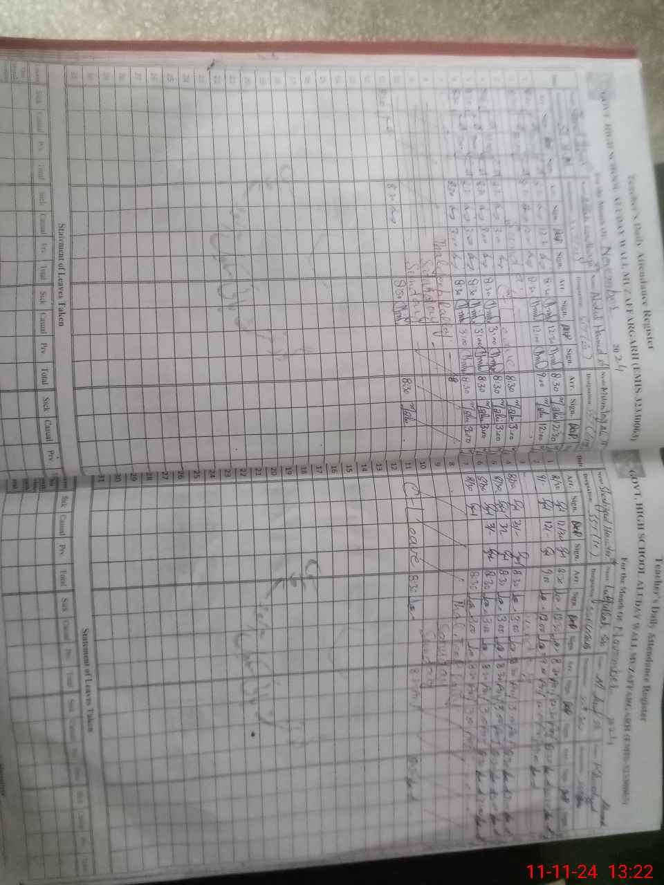 | CNIC | Full Name | Designation | R/C | Absence During Last Calender Month |