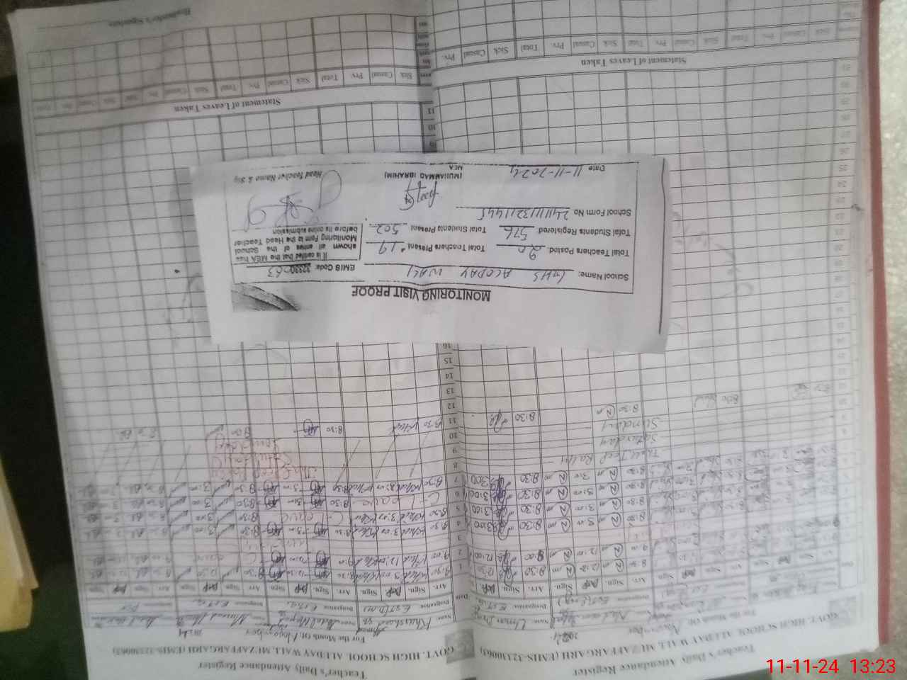 | Attendance Register | Head Teacher | MEA with School | Visit Proof |
