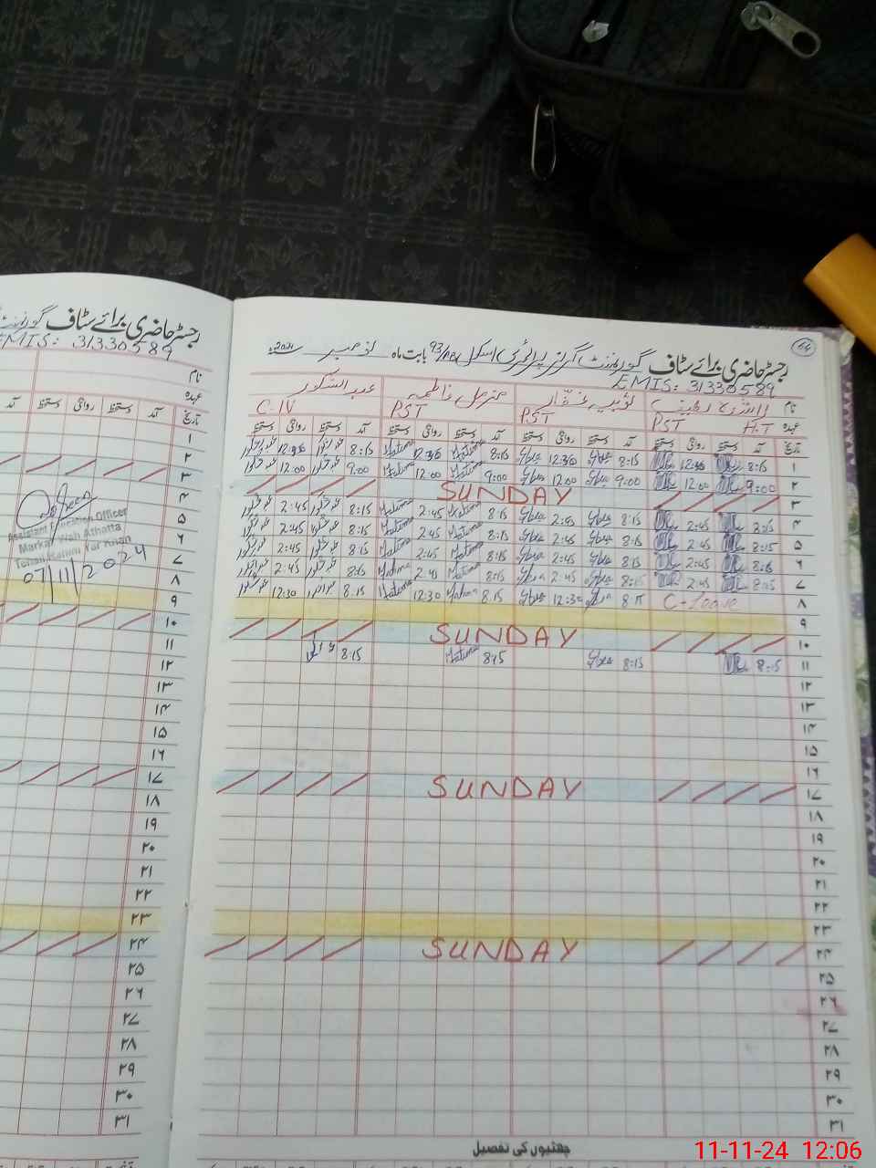 | CNIC | Full Name | Designation | R/C | Absence During Last Calender Month |