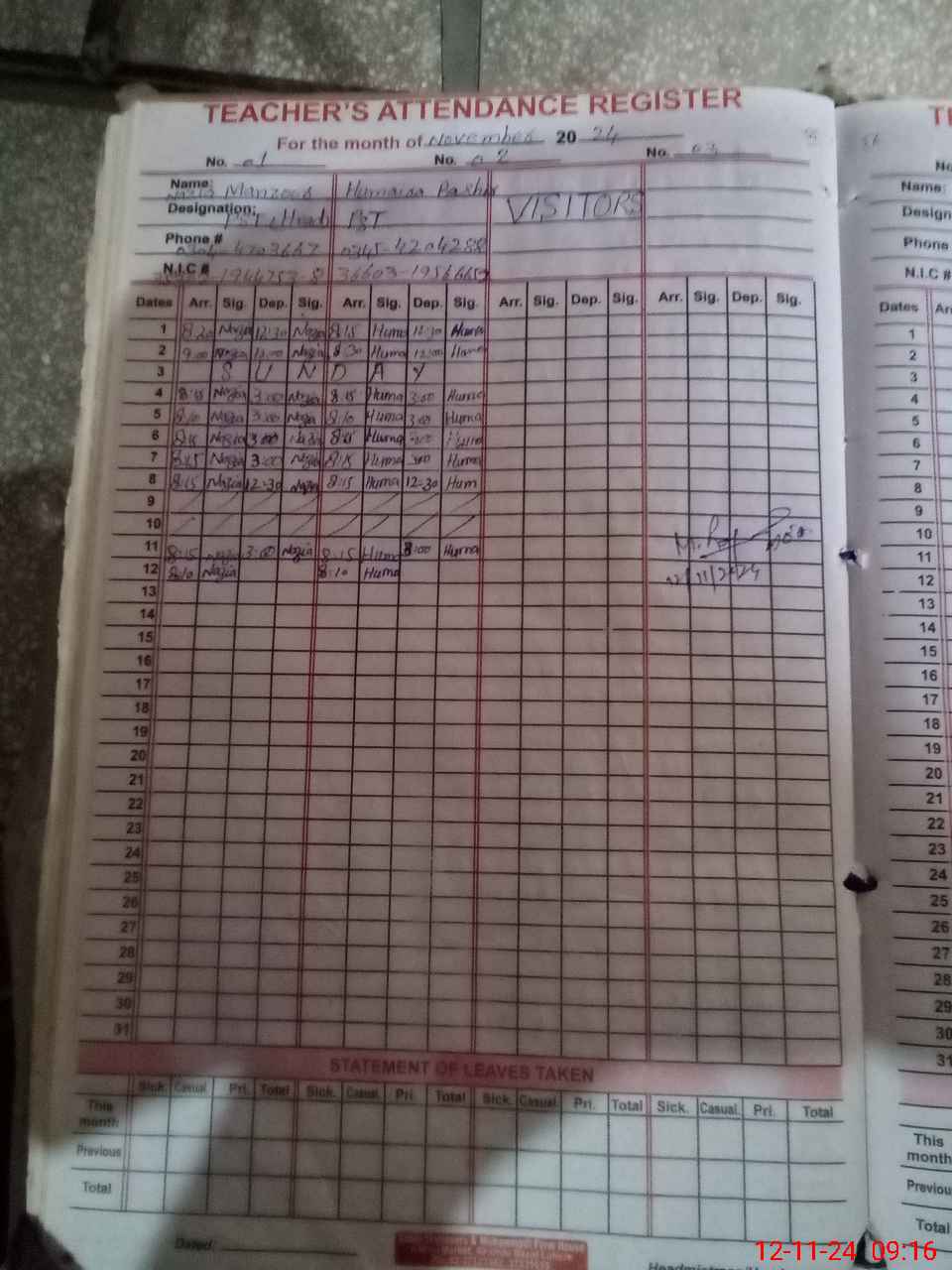 | Name: Hu**** Ba**** Designation: (School Headmaster's/Headmistress's) PST Phone/Cell Number: 03**** |
