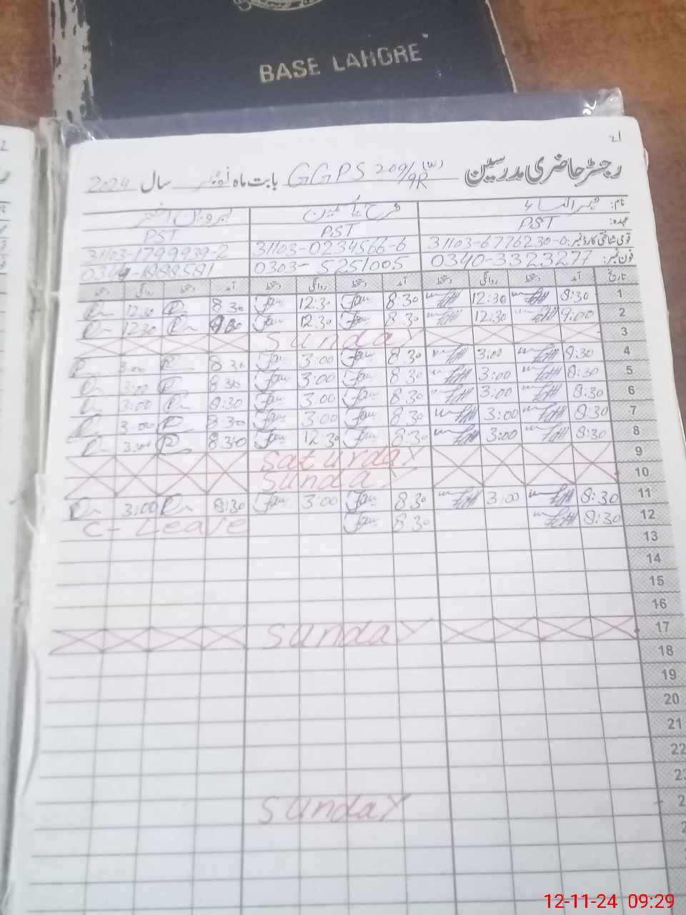 | CNIC | Full Name | Designation | R/C | Absence During Last Calender Month |