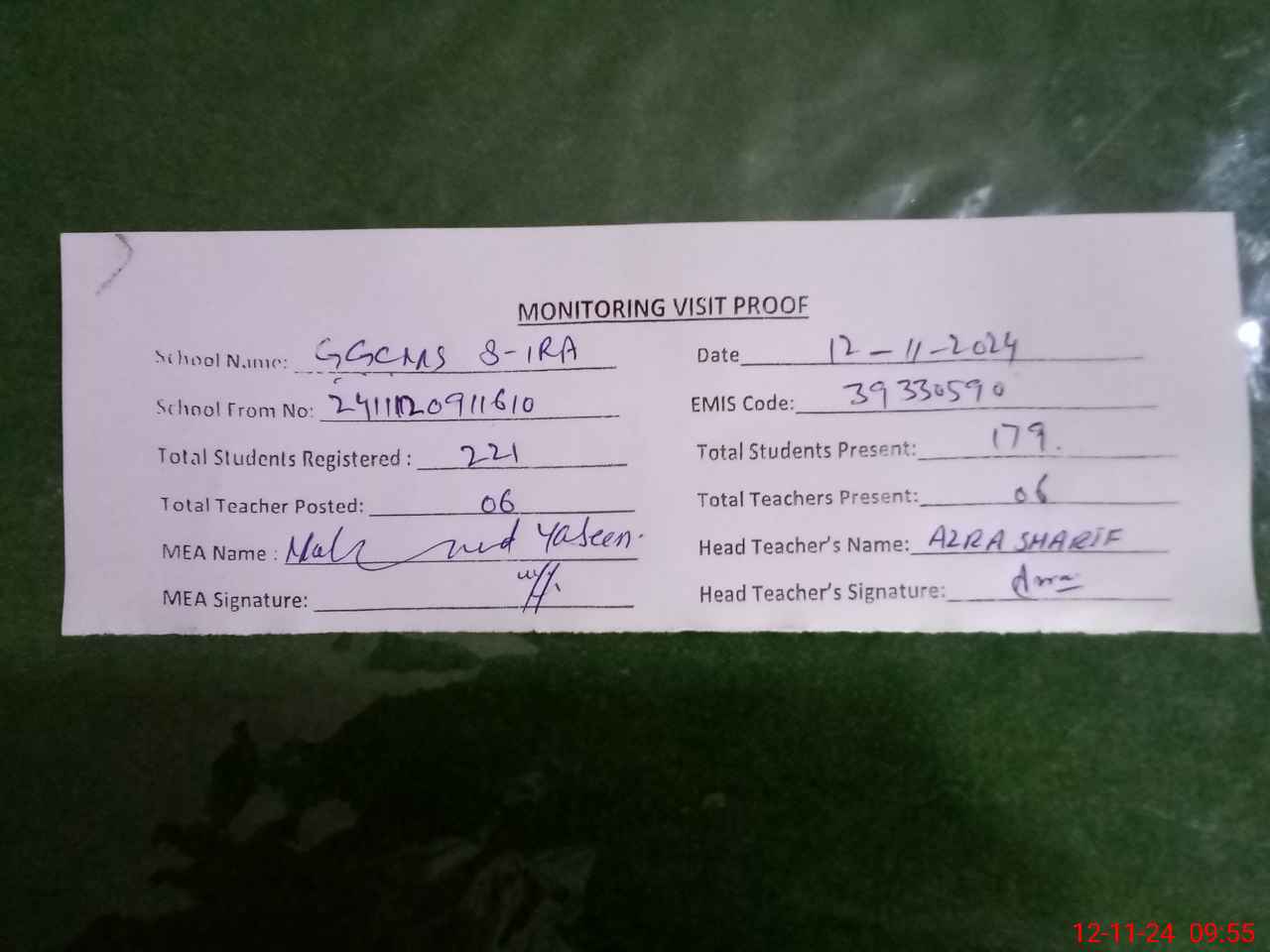 | EMIS Code: 39330590 | Name of School: GGCMS CHAK NO. 8/1-RA | |||