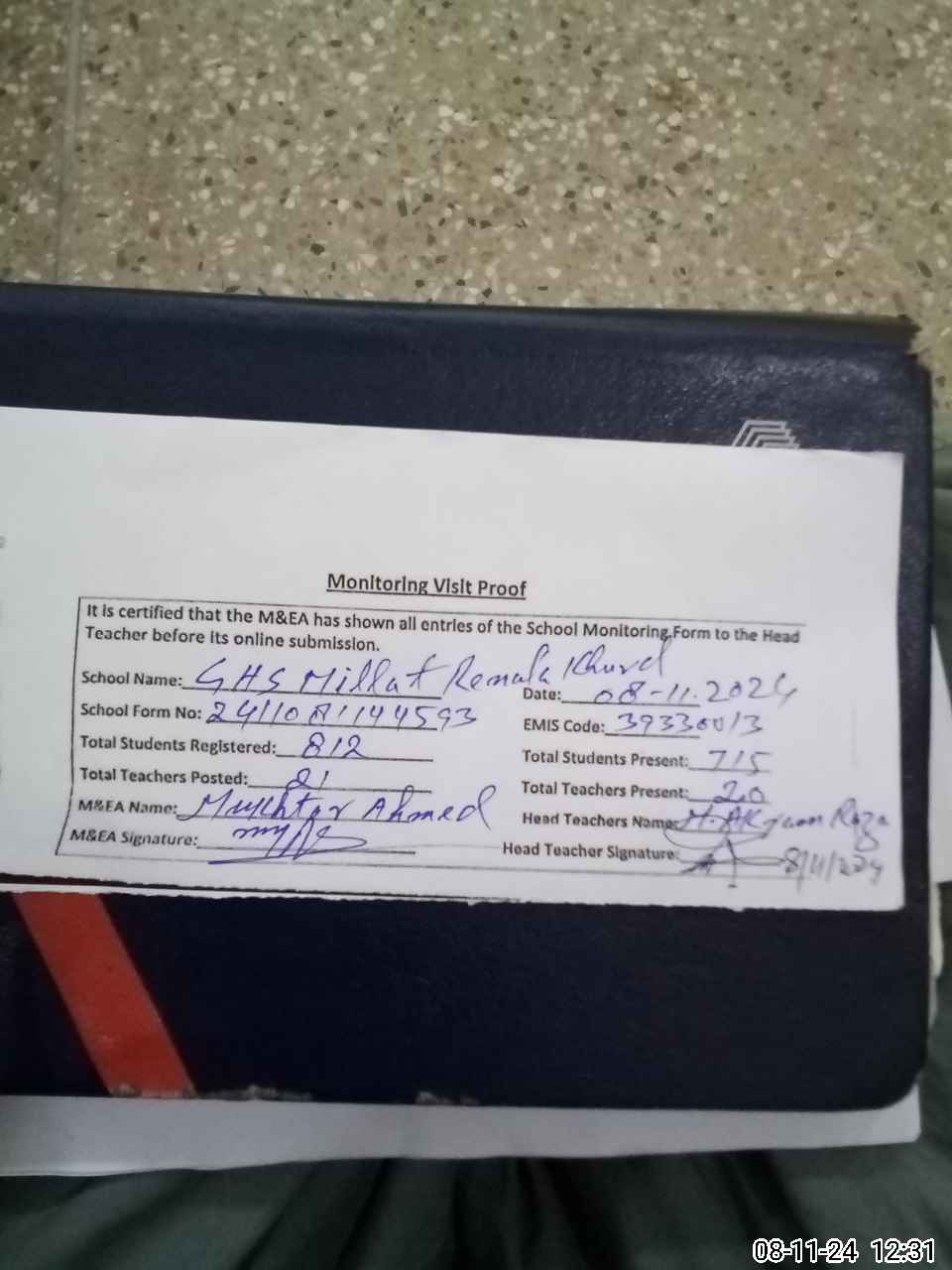 | EMIS Code: 39330013 | Name of School: GHS MILLAT RENALA KHURD G T ROAD | |||