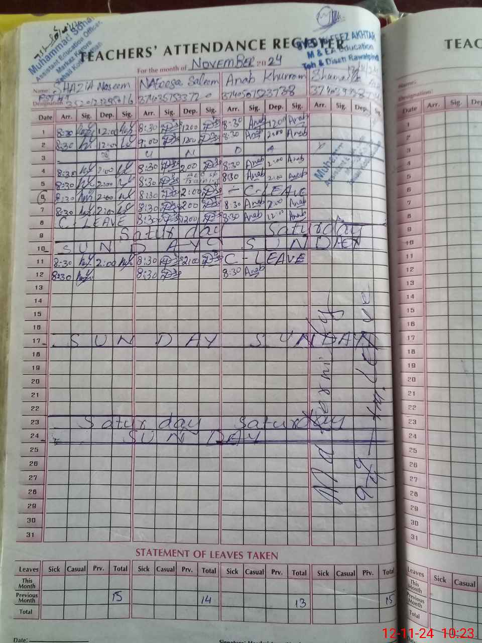 | 37**** | Sh**** Az**** | PST | Regular | 0 | 0 | 0 | 0 | 0 | 0 | 0 | 0 | 0 | Maternity |