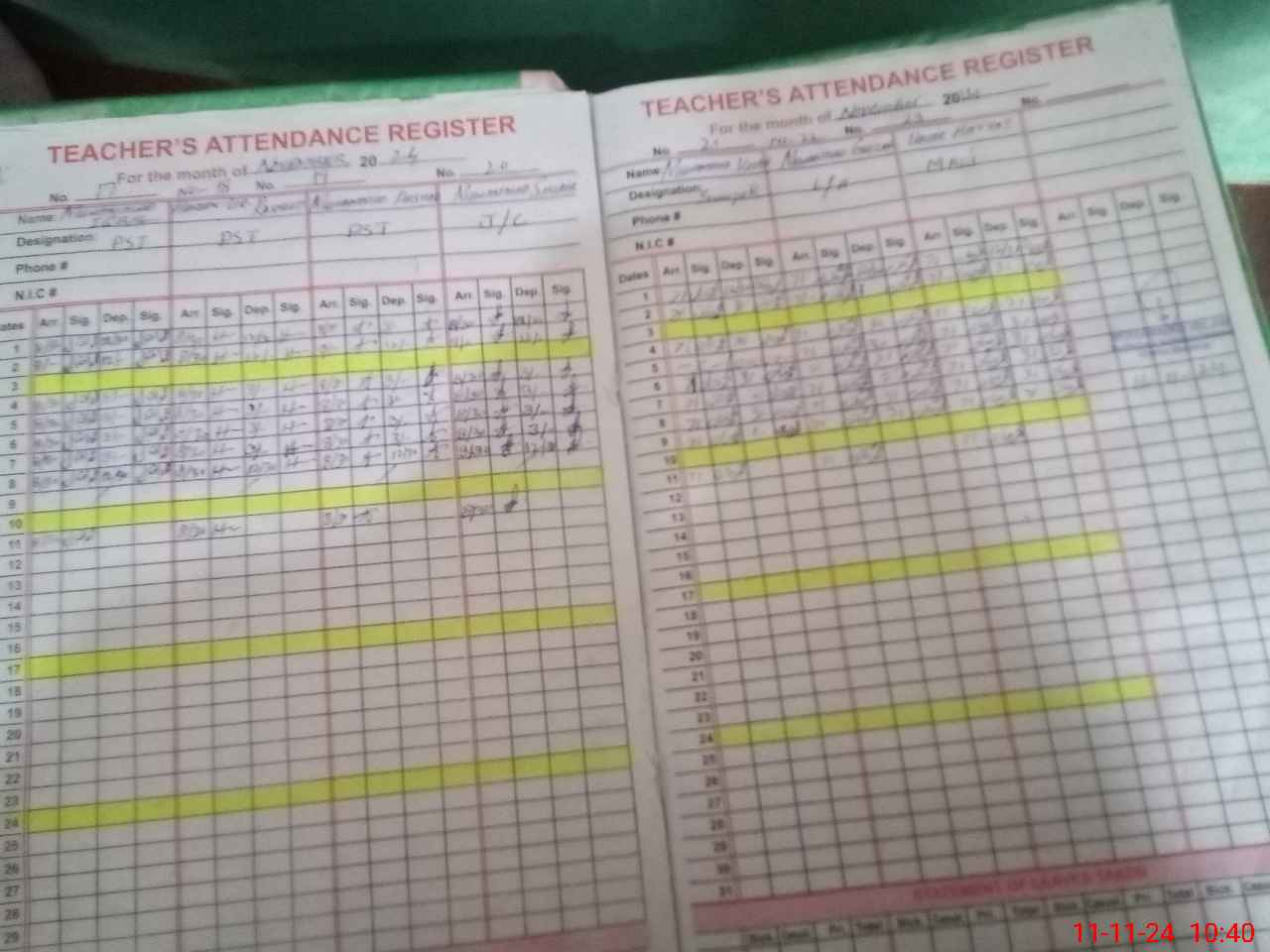 | CNIC | Full Name | Designation | R/C | Absence During Last Calender Month |