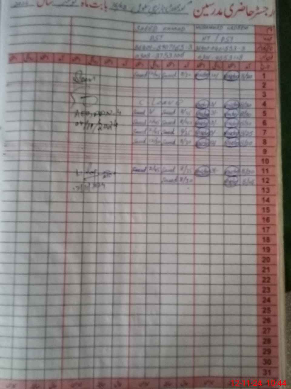 | Name: Mu**** Na**** Designation: (School Headmaster's/Headmistress's) PST Phone/Cell Number: 03**** |