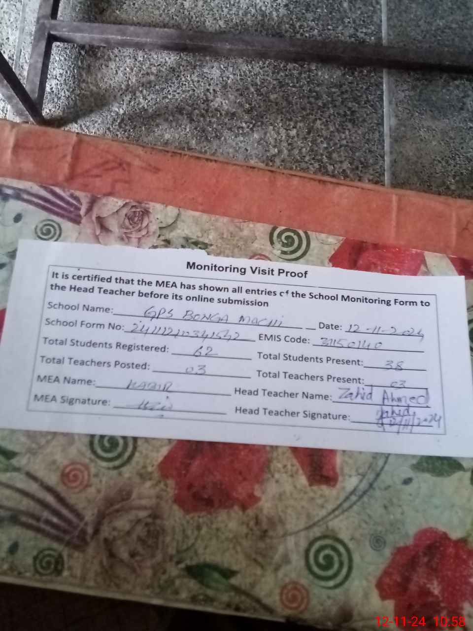 | EMIS Code: 31150140 | Name of School: GPS BUNGA MACHI | |||