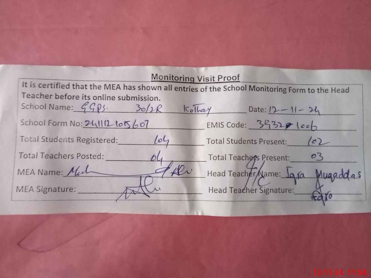 | EMIS Code: 39321006 | Name of School: GGPS KOTHAY 30/2-R | |||