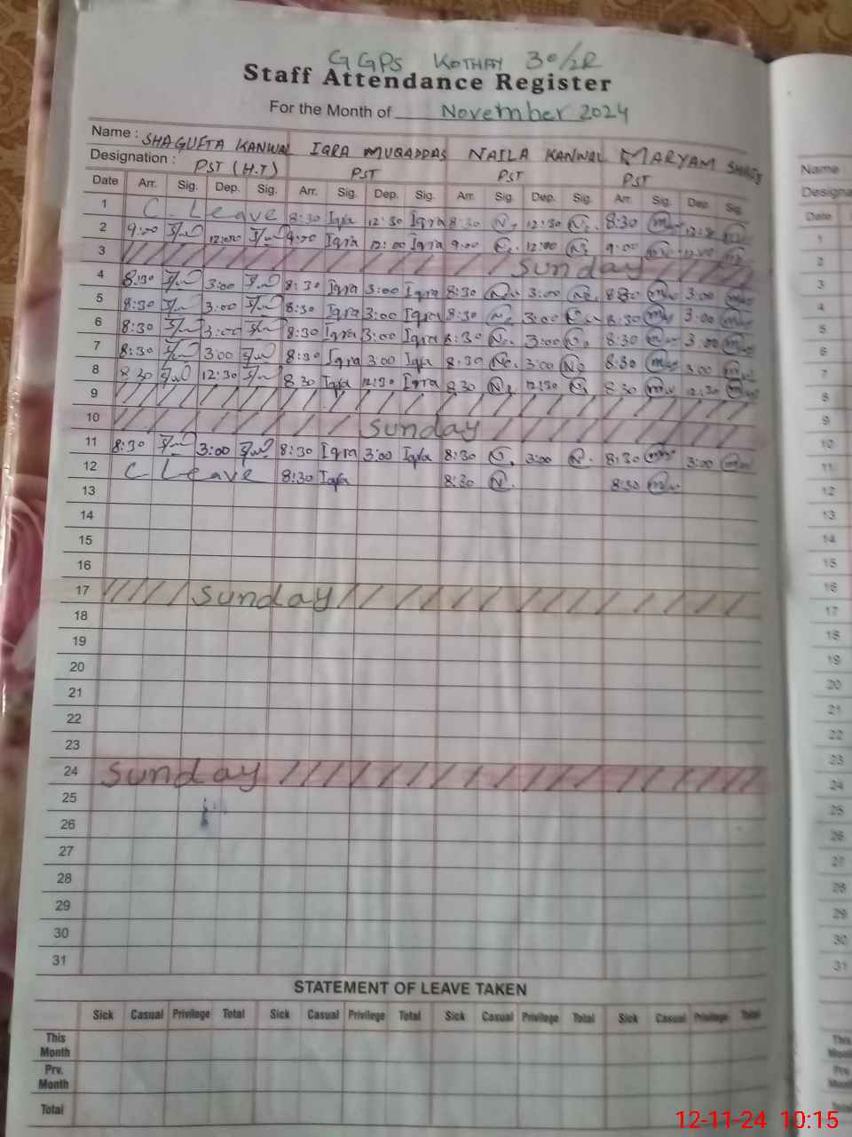 | Name: Sh**** Ka**** Designation: (School Headmaster's/Headmistress's) PST Phone/Cell Number: 03**** |