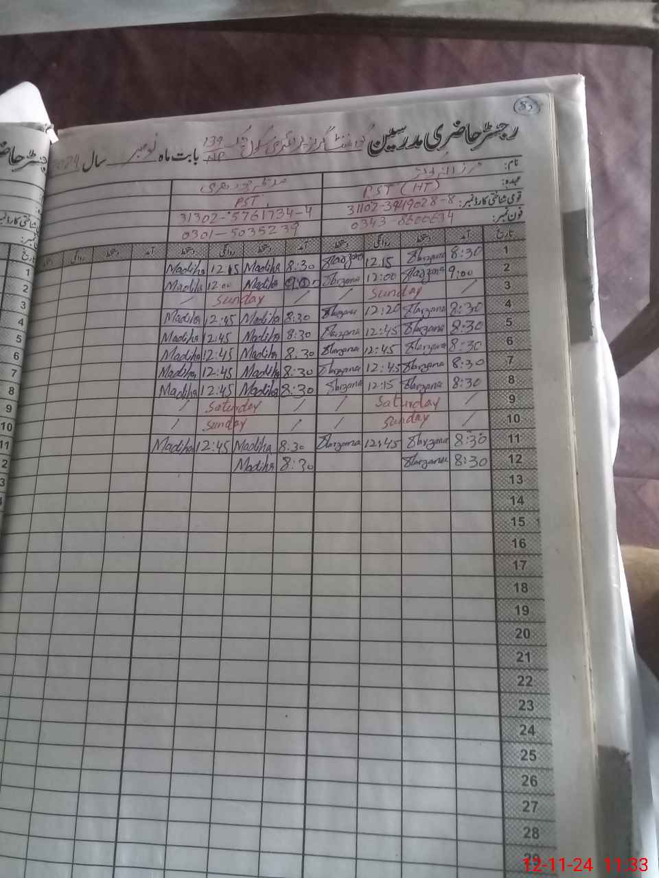 | CNIC | Full Name | Designation | R/C | Absence During Last Calender Month |