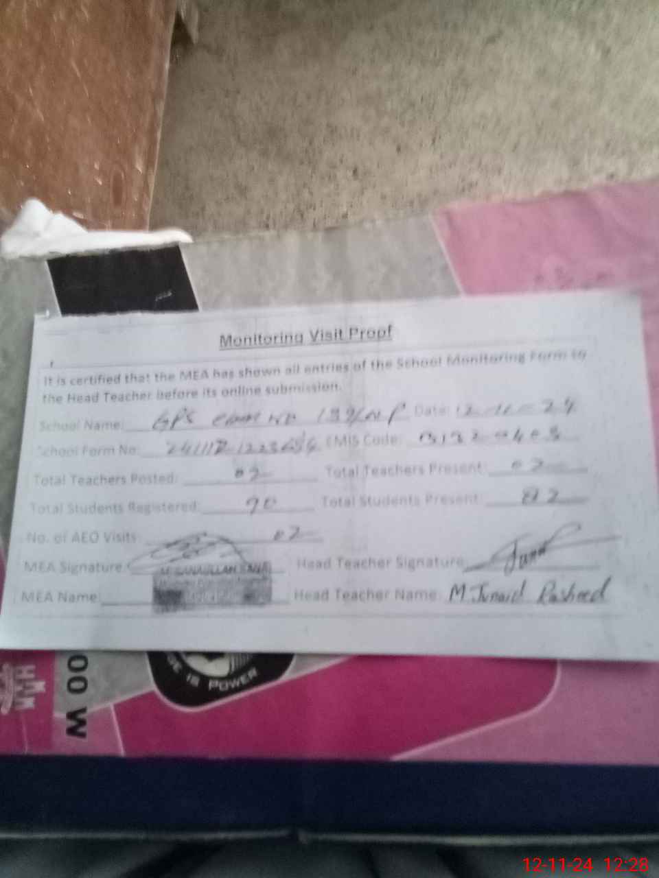 | Monitoring Date: 12-11-2024 | Start Time: 12-11-2024 12:00 PM | End Time: 12-11-2024 12:30 PM | Name of MEA: Mu**** Sa**** Ul**** Sa**** | |